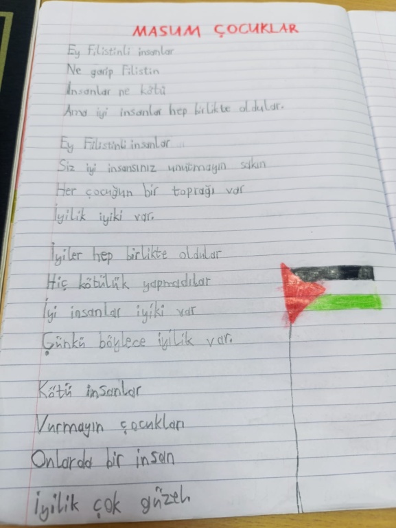 Filistin halkının özgürlük, adalet ve barış için mücadelelerine şahit olduğumuz günlerde, onların yanında olduğumuzu bir kez daha gösterdik. Yaşanan insan hakları ihlallerini, Filistin halkının yaşadıklarını bir nebze olsun anlatmaya çalıştık. Etkinliklere katılan tüm idareci, öğretmen ve öğrencilerimize teşekkür ediyoruz.